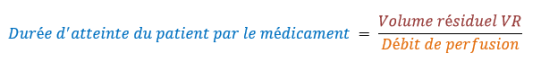 = temps écoulé entre le démarrage de la perfusion et l'arrivée du médicament dans le système vasculaire.