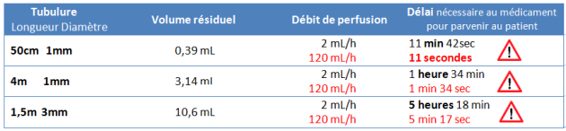 Comprendre le rapport entre la longueur et le diamètre de la tubulure utilisée et le temps nécessaire au médicament pour atteindre le système vasculaire du patient.