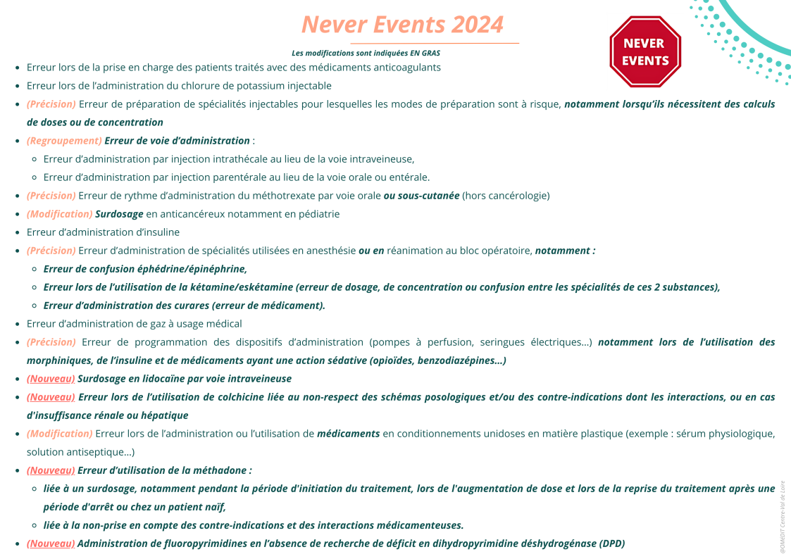 Les "Never Events" sont des événements indésirables graves évitables qui n'auraient pas dû survenir si des mesures de prévention adéquates avaient été mises en œuvre.