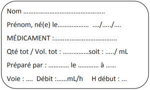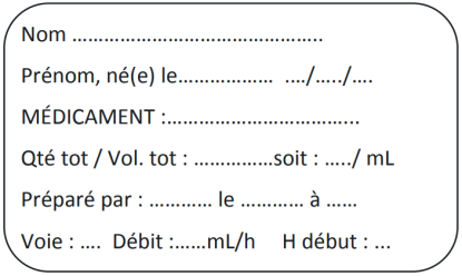Fondamental : La préparation doit être identifiable jusqu'à l'administration et l'étiquetage ne doit jamais être enlevé avant emploi