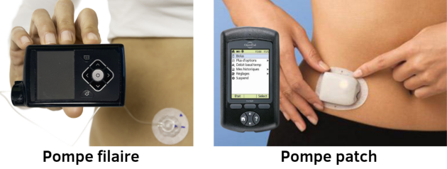 Les pompes peuvent être filaire ou patch (= canule non visible pour le patient)