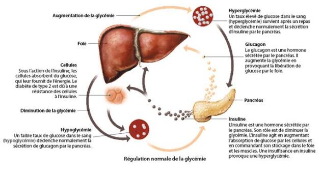 L'insuline est une hormone sécrétée par le pancréas qui régule la glycémie (taux de glucose dans le sang).