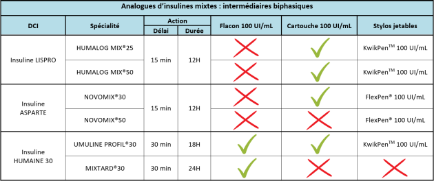 Remarque : les insulines biphasiques et celles d'aspect laiteux doivent toujours être rigoureusement homogénéisé avant administration