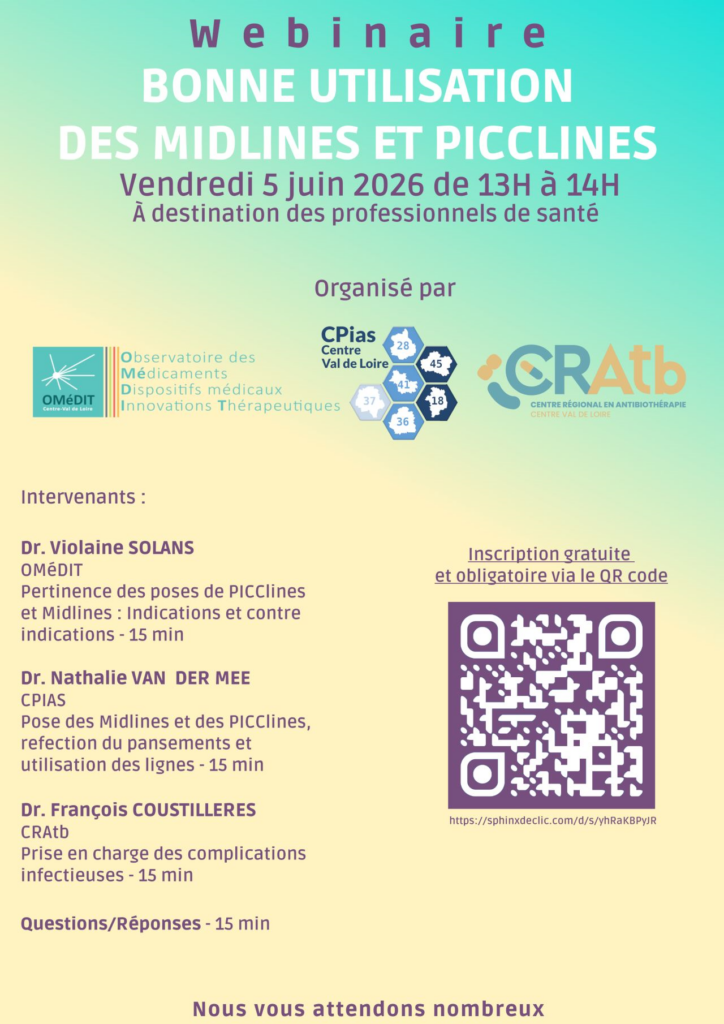 Le CRAtb Centre-Val de Loire organise, en collaboration avec le CPIAS Centre val de Loire et l’OMéDIT Centre-Val de Loire, un webinaire sur la thématique suivante 👉 « Bonne utilisation des Midlines et Picclines ».